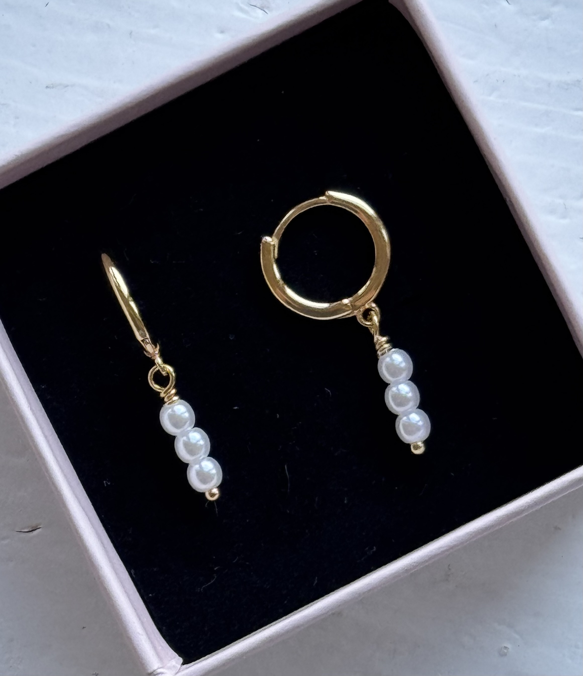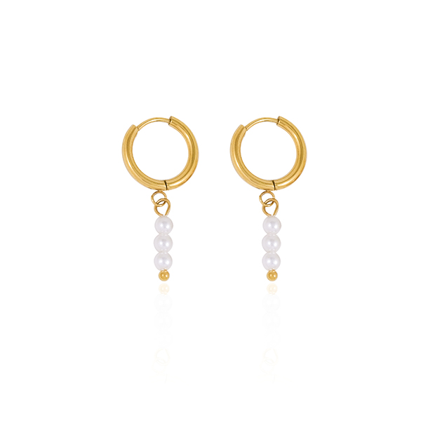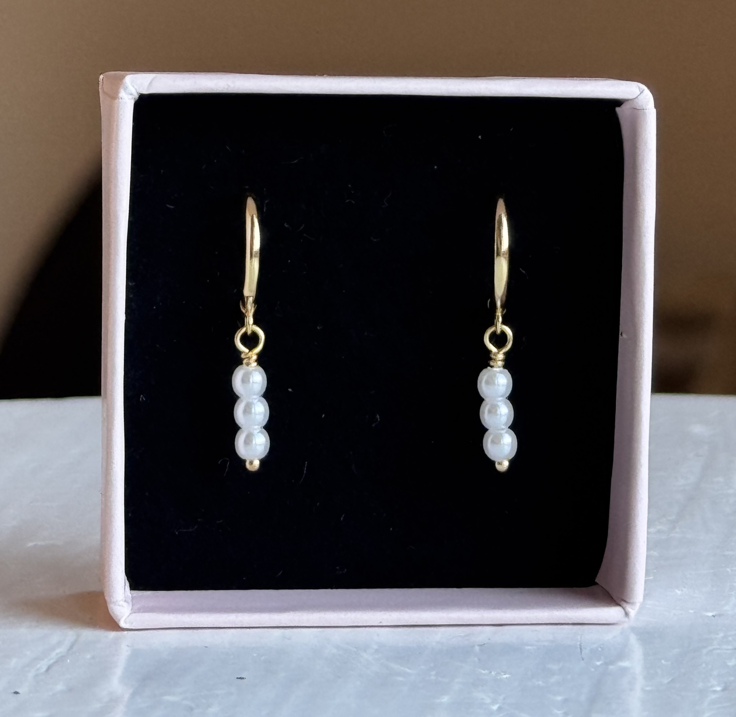 Ina creoler med 3 små perler (forgyldte) UDEN SMYKKEÆSKE