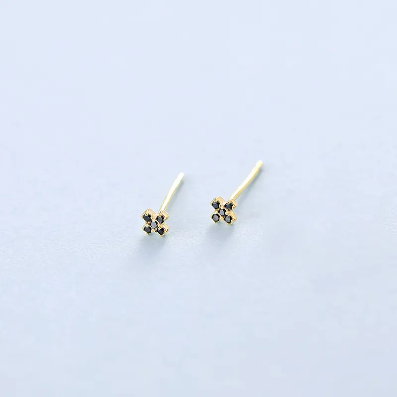 Små kryds ørestikker med sort zirkonia sten (Forgyldt) UDEN SMYKKEÆSKE