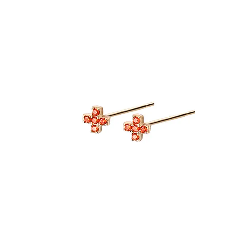 Små kryds ørestikker med orange/rød zirkonia sten (Forgyldt) UDEN SMYKKEÆSKE