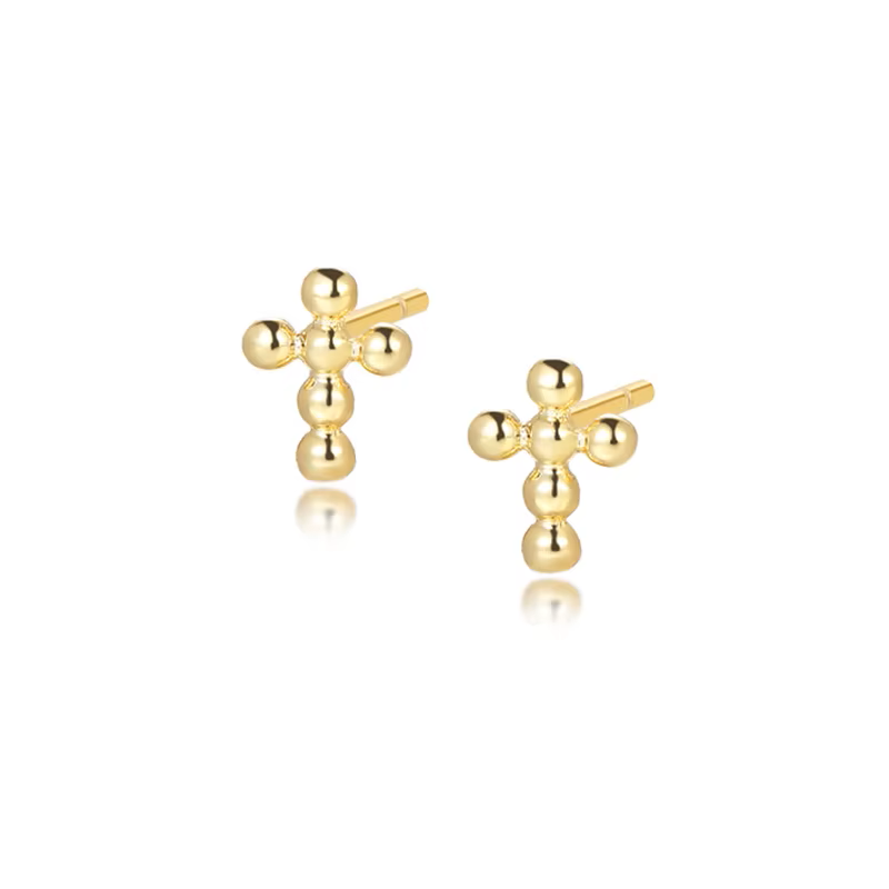 Bubble Faith er fine ørestikker formet som et lille kors i små kugler, støbt i forgyldt.