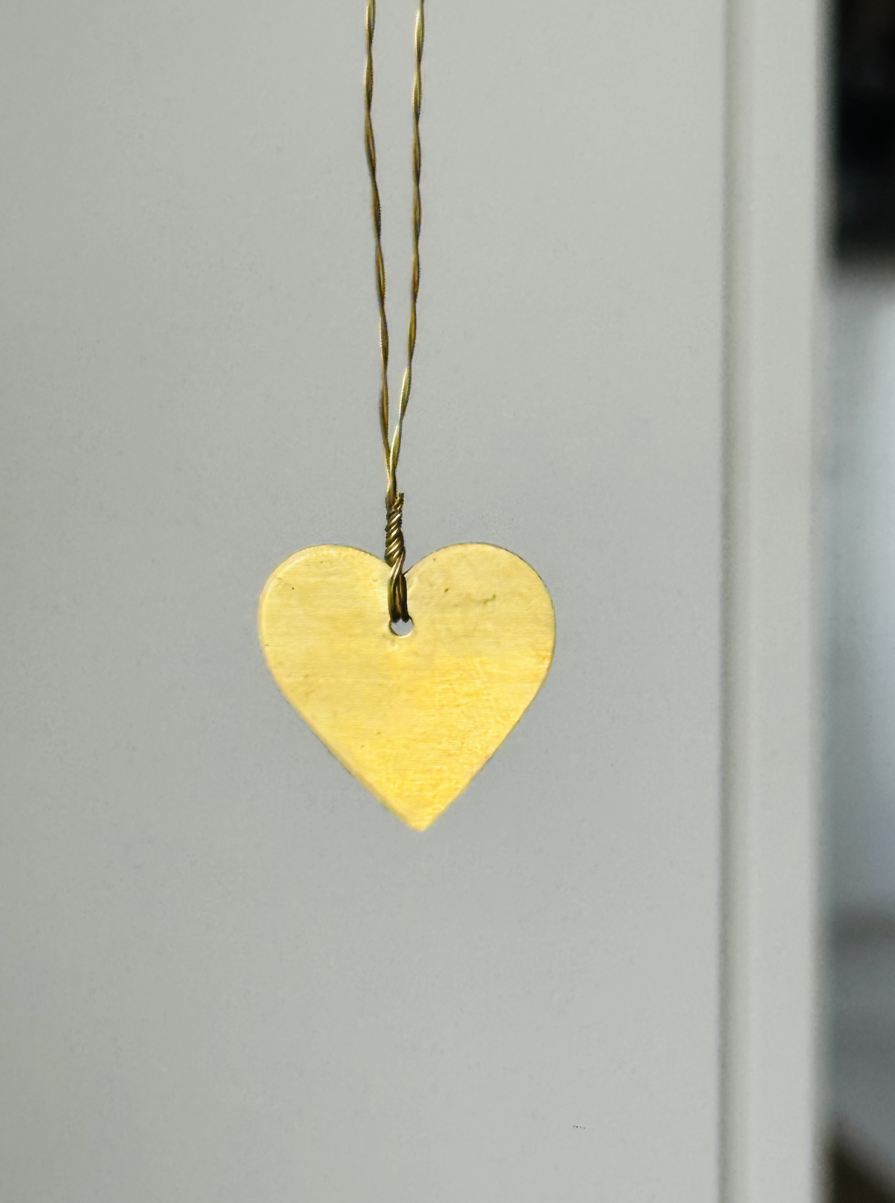 Hjertet er skåret i messing som er et levende og naturligt materiale der med tiden udvikler en smuk patina.
