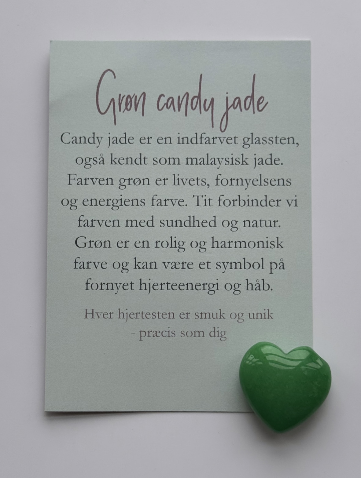 Grøn candy jade hjertesten med A7-kort | Fornyelse & håb