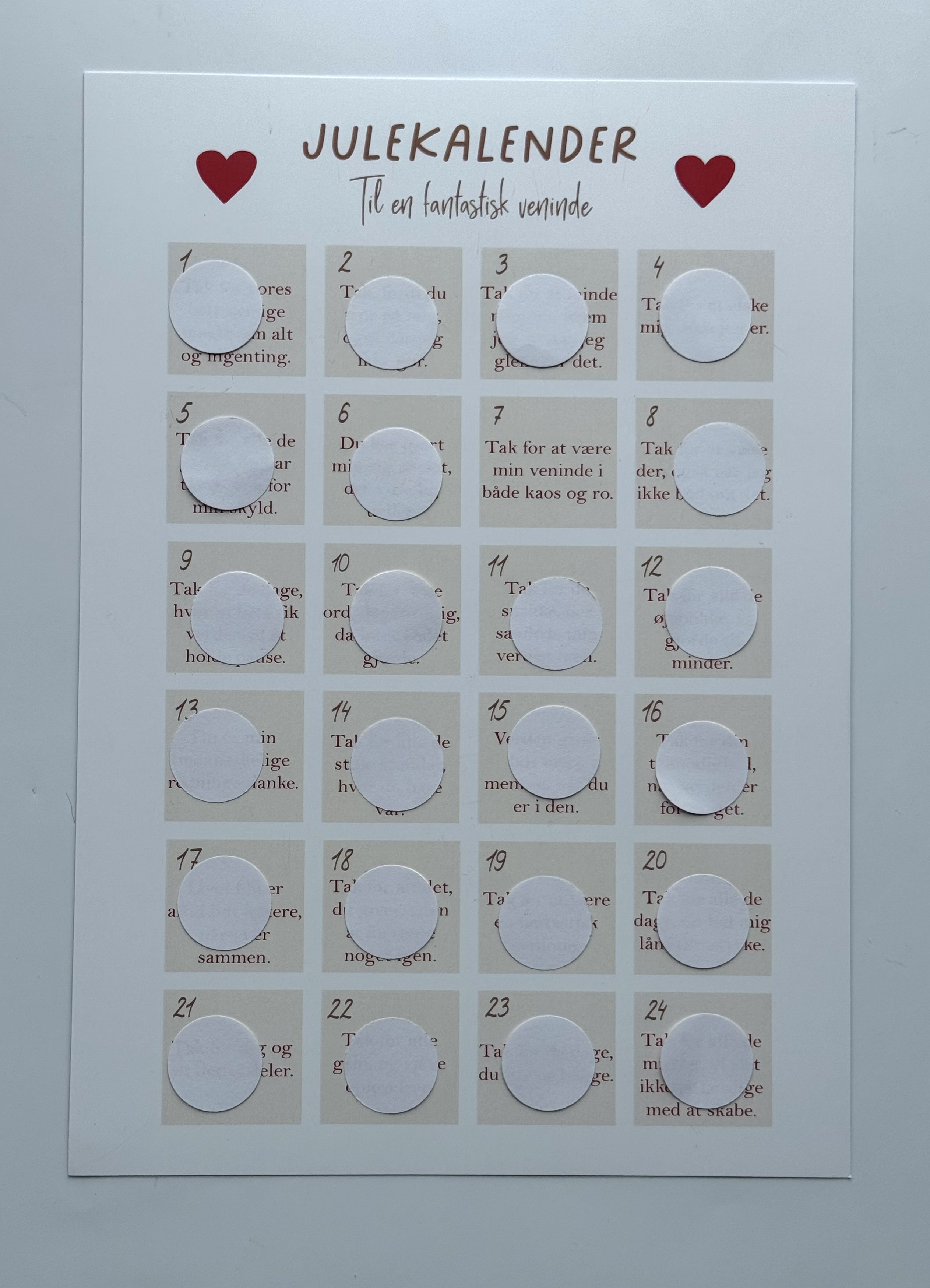 En personlig julekalender fyldt med tak, varme og kærlige ord – til hende, der fortjener lidt ekstra i december.