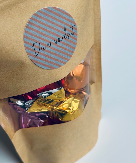 Lækker chokolade i forskellige smage, klar til at give videre som lille gave, tak eller kærlig overraskelse.