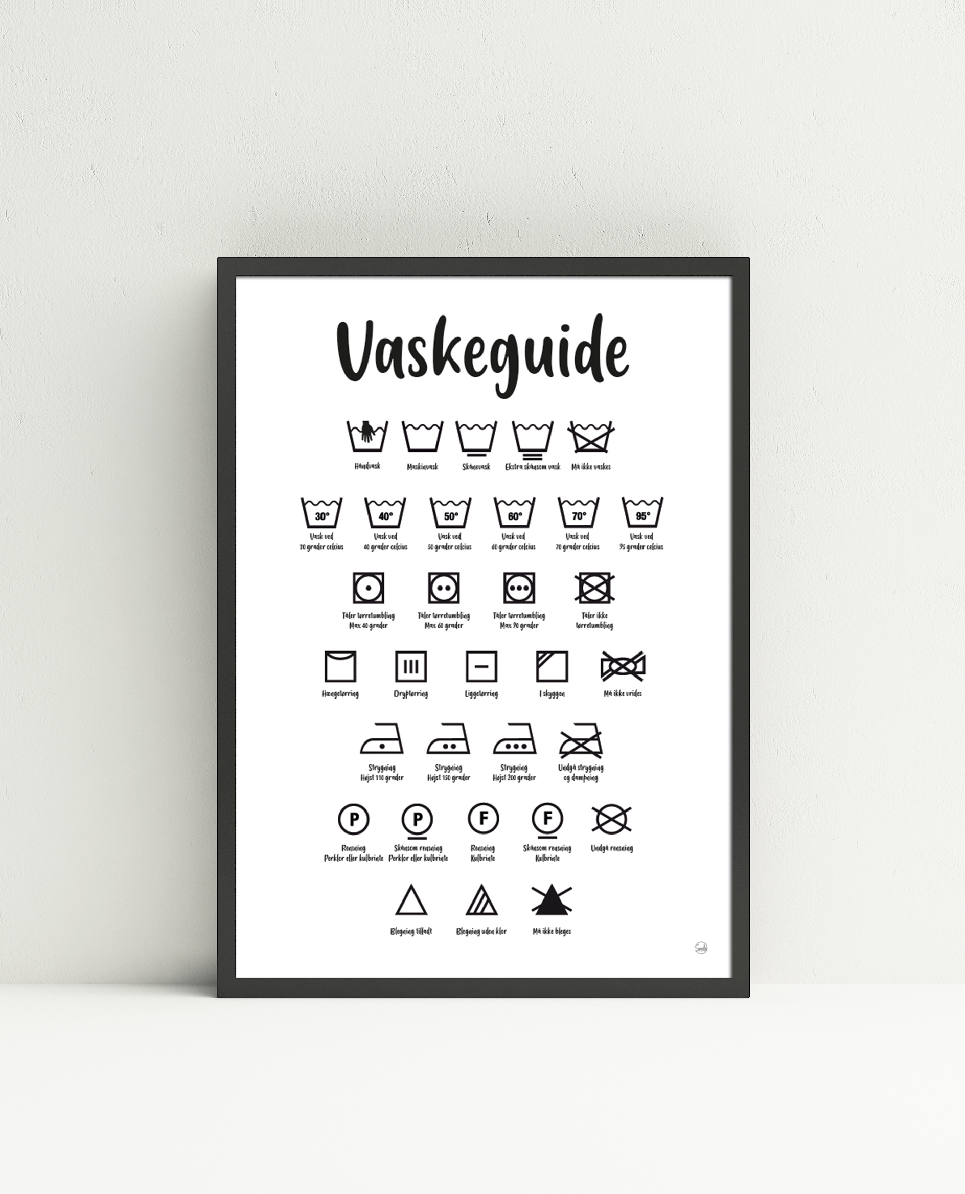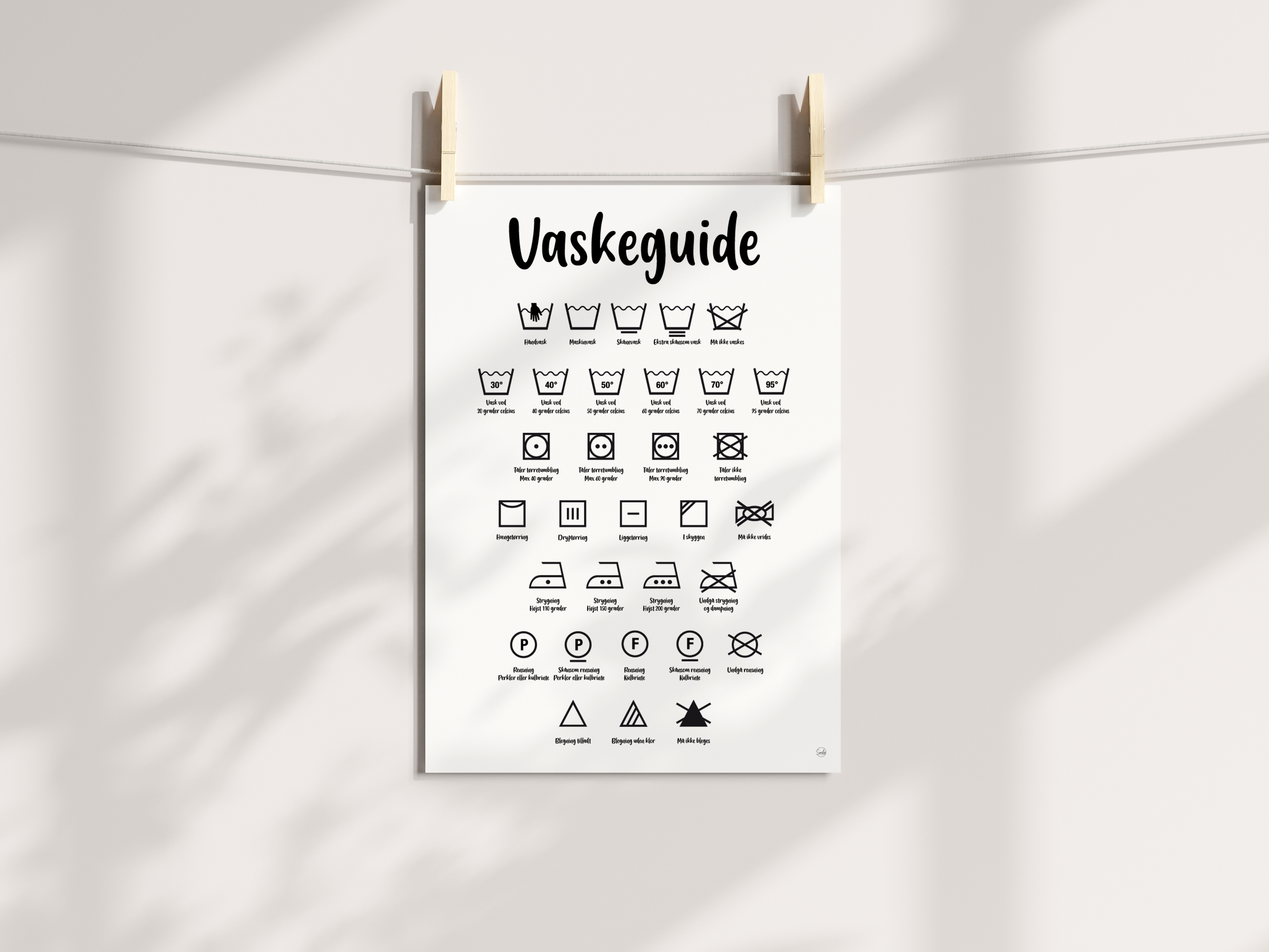 Vaskeguide Plakat – A4 og A3 | Minimalistisk vaskeguide med symboler