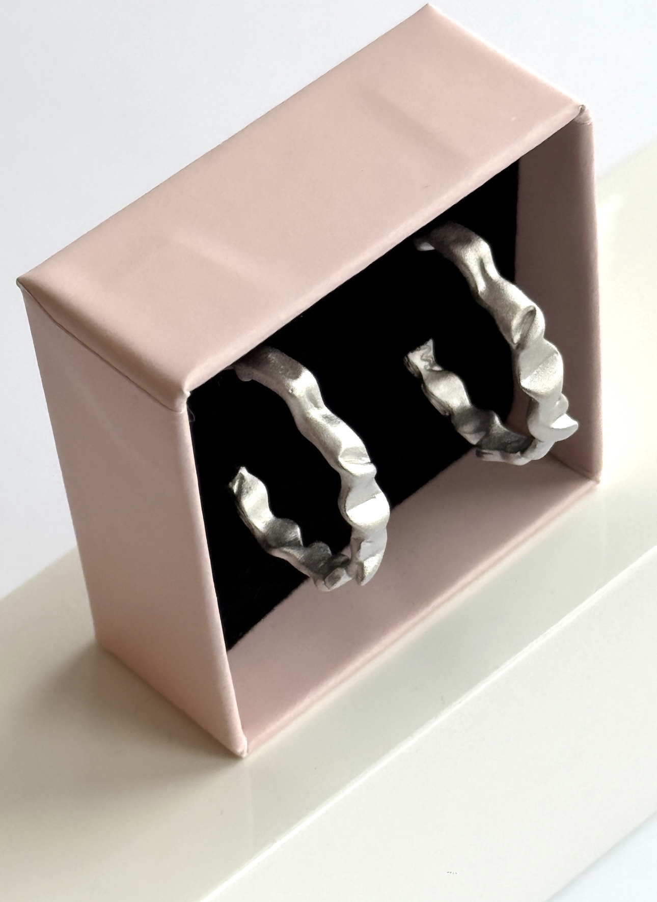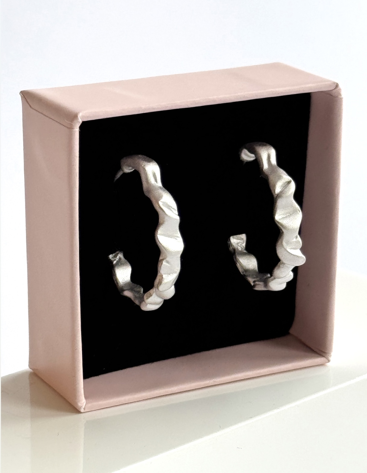 Den matte overflade giver et roligt og eksklusivt look, som gør creolerne nemme at bruge både til hverdag og mere festlige anledninger.