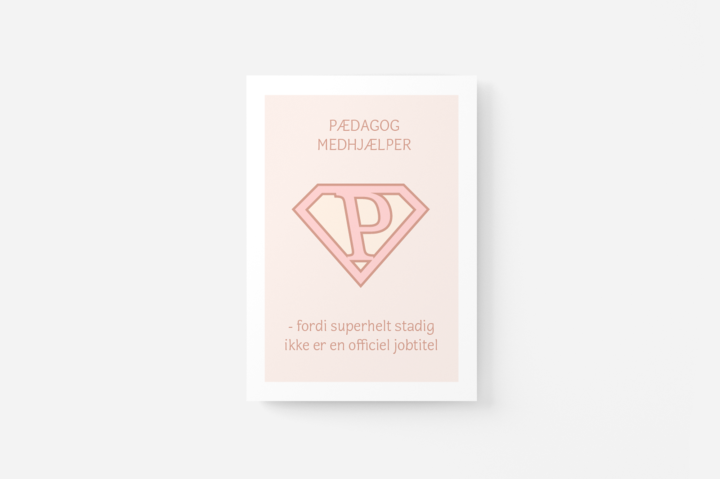 Superhelt – Pædagogmedhjælper | A5 kort (rosa)