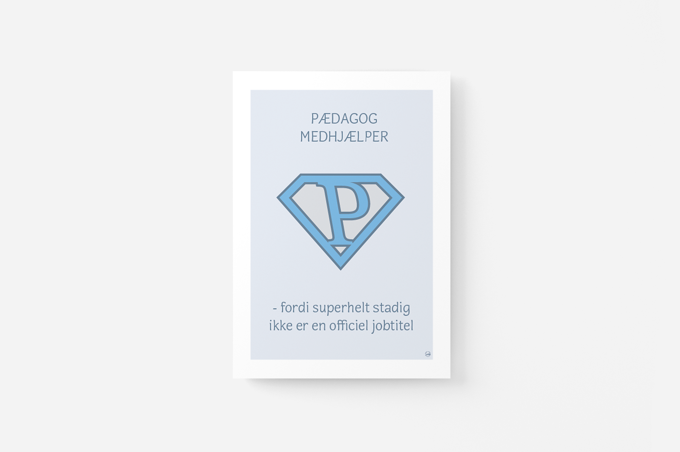 Superhelt – Pædagogmedhjælper | A5 kort (blå)